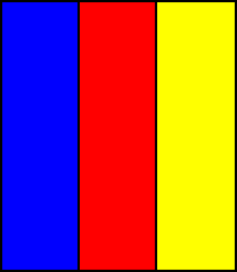 2) On dispose 3 bandes côte à côte. On colorie chaque bande en vert, en rouge, en bleu, en jaune ou en noir comme dans l'exemple ci-contre. ON NE PEUT UTILISER CHAQUE COULEUR QU'UNE SEULE FOIS.