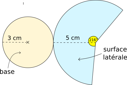 Le rayon de la portion de disque représentant la surface latérale est égal à 5cm.